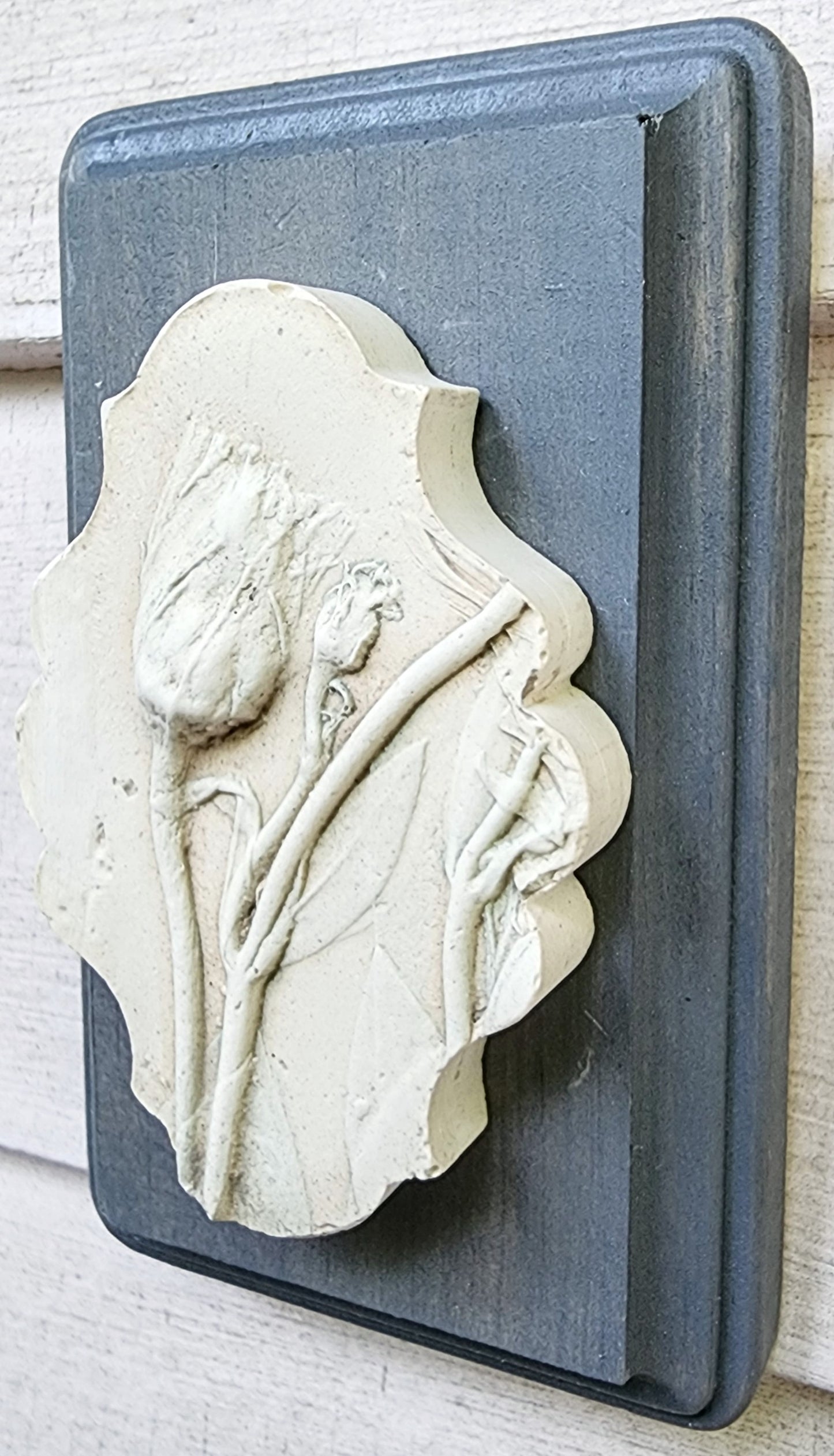 Botanical bas relief plaster art commissions welcome for casts up to 16"×24" in size. Please send a message for more details.