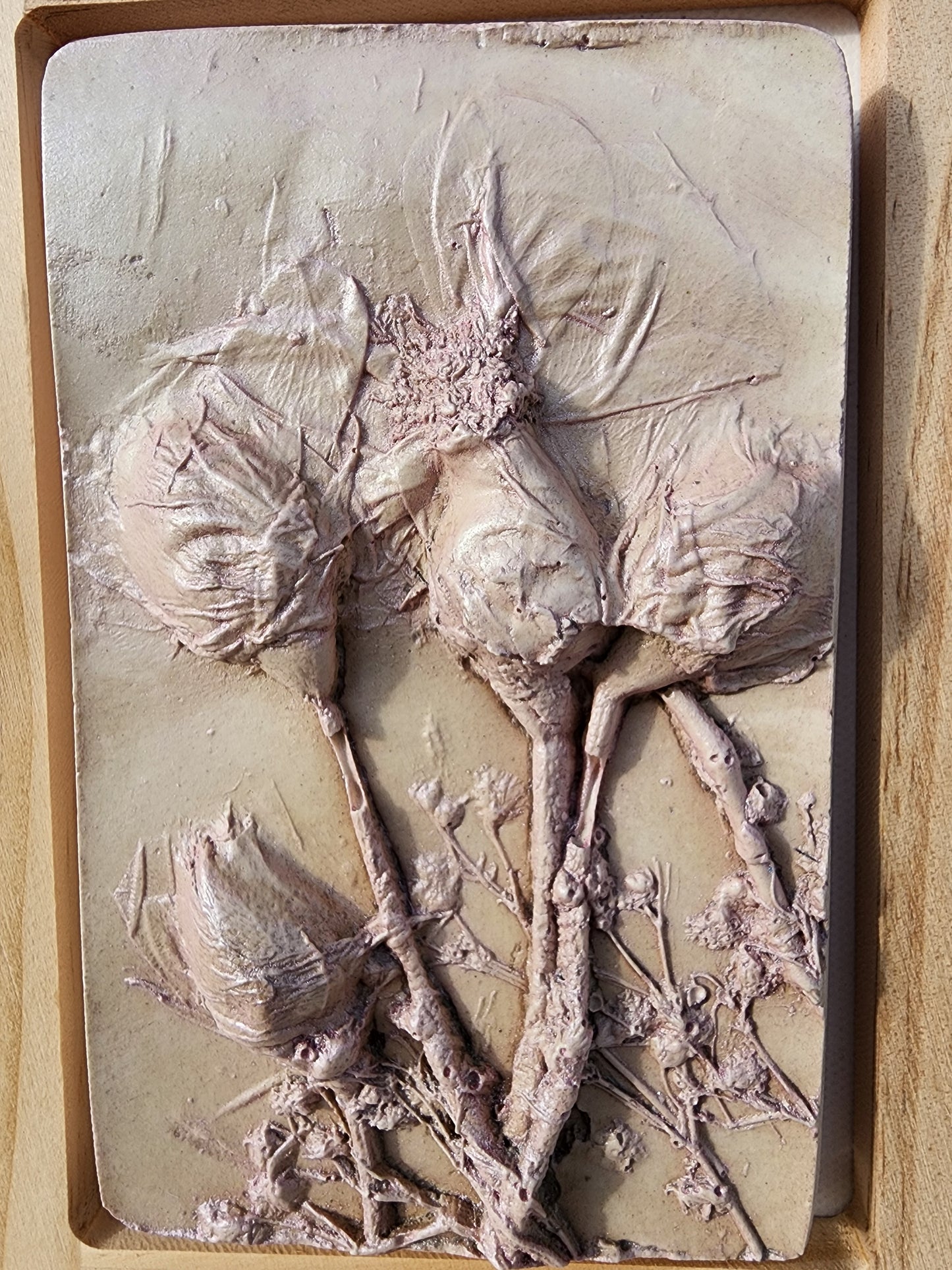 Botanical bas relief plaster art commissions welcome for casts up to 16"×24" in size. Please send a message for more details.