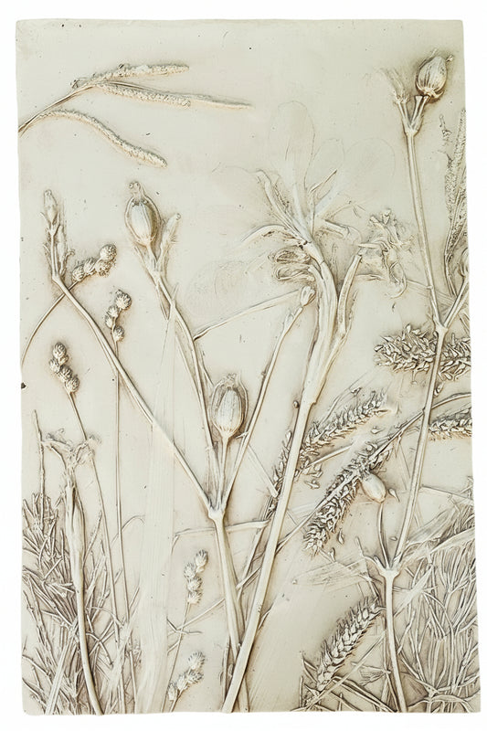 Plaster Botanical Bas Relief Artwork - Oat Light