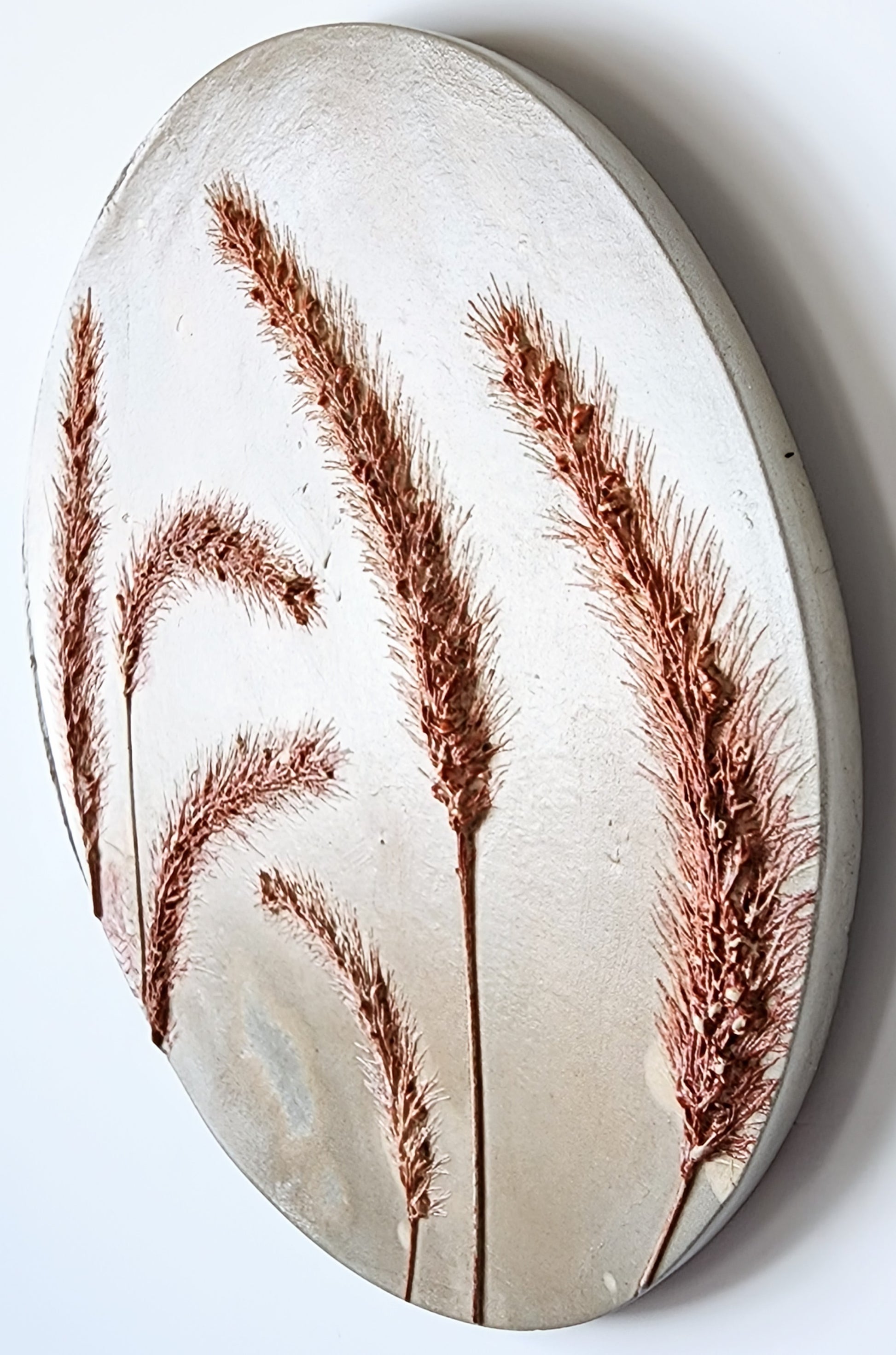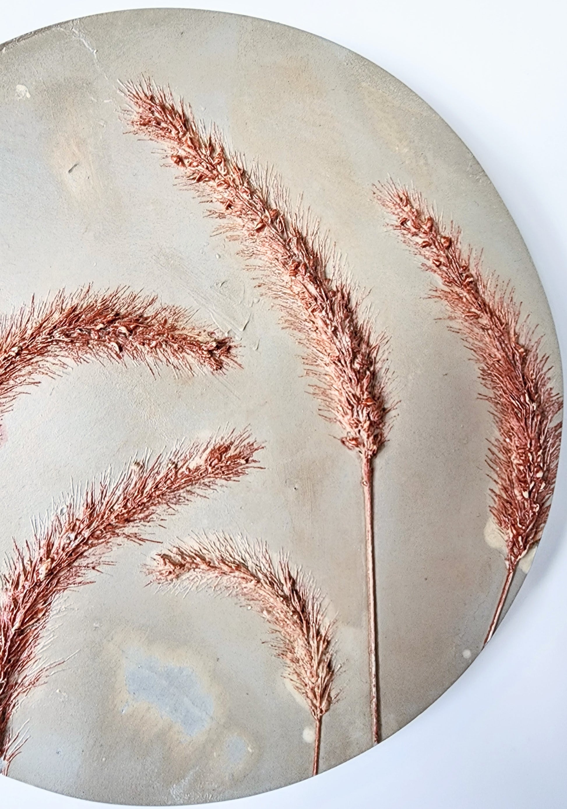 Plaster Cast Dimensions: approximately 6.5" in diameter by 0.5" in depth. Edges and depths are variable due to the piece's handcrafted nature.