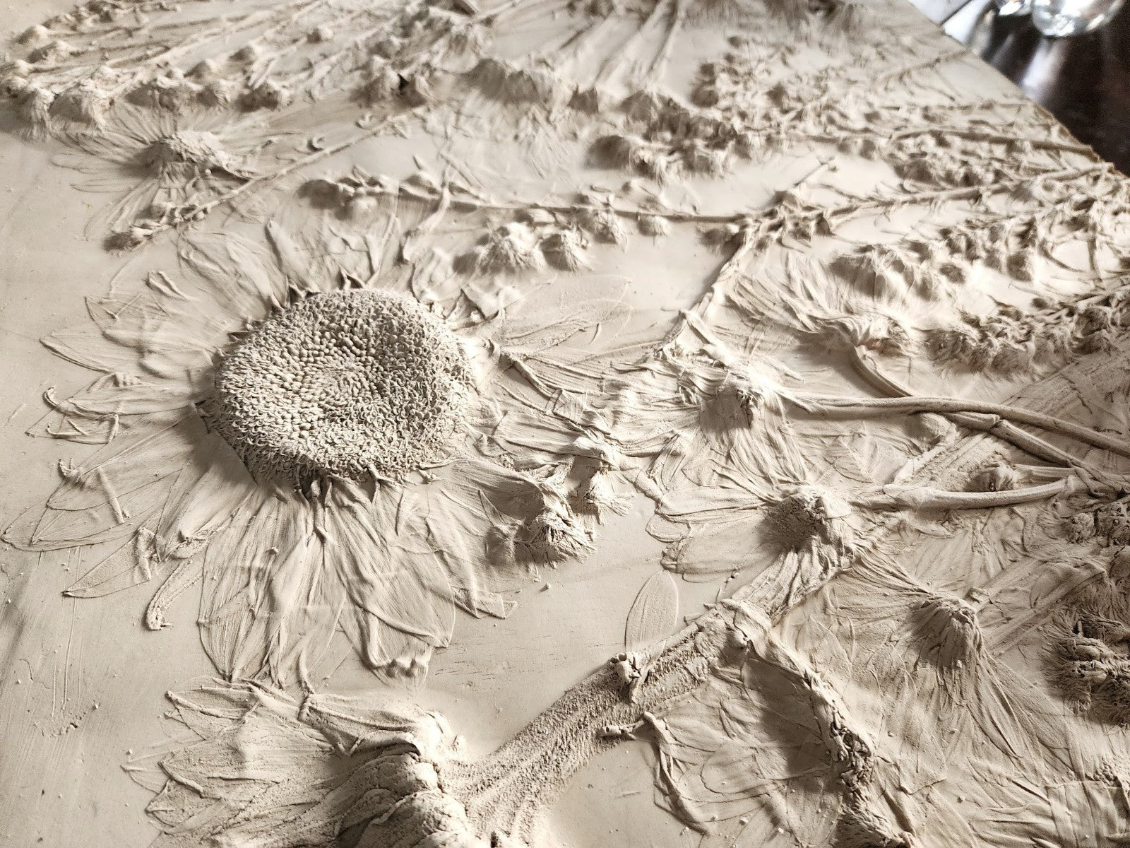Botanical bas relief plaster art commissions welcome for casts up to 16"×24" in size. Please send a message for more details.