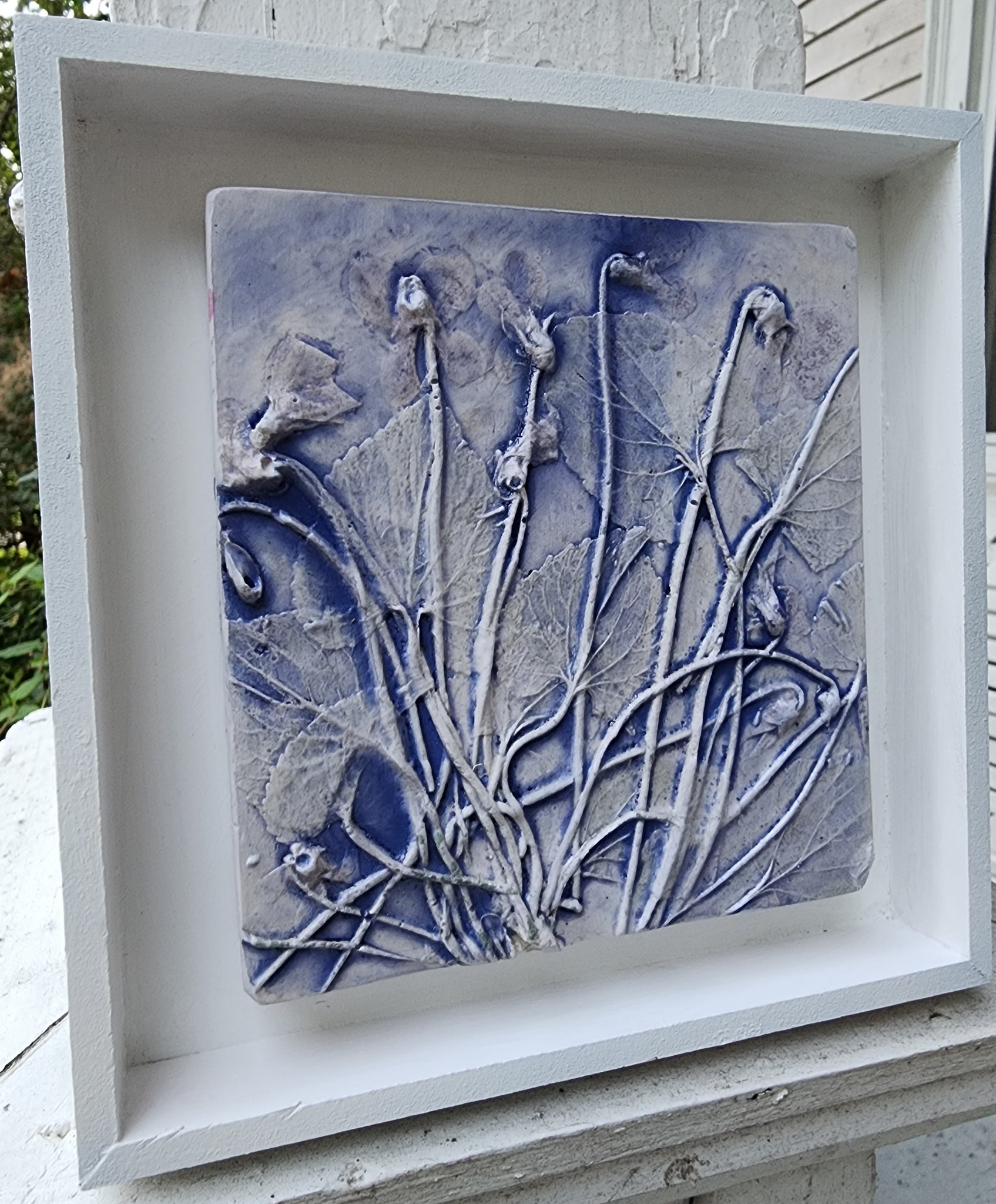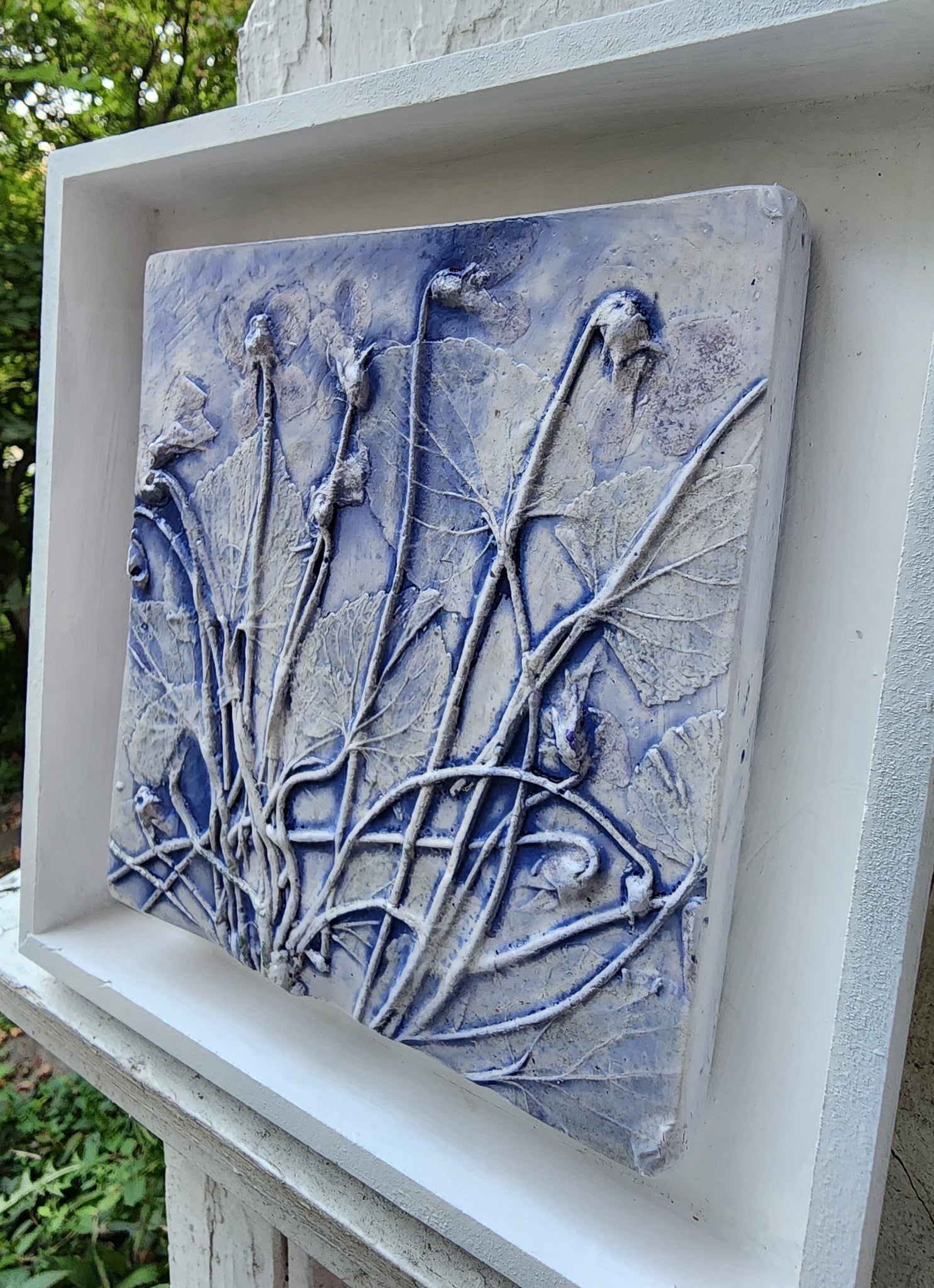 Botanical bas relief plaster art commissions welcome for works up to 16"×24" in size. Message us for more details.