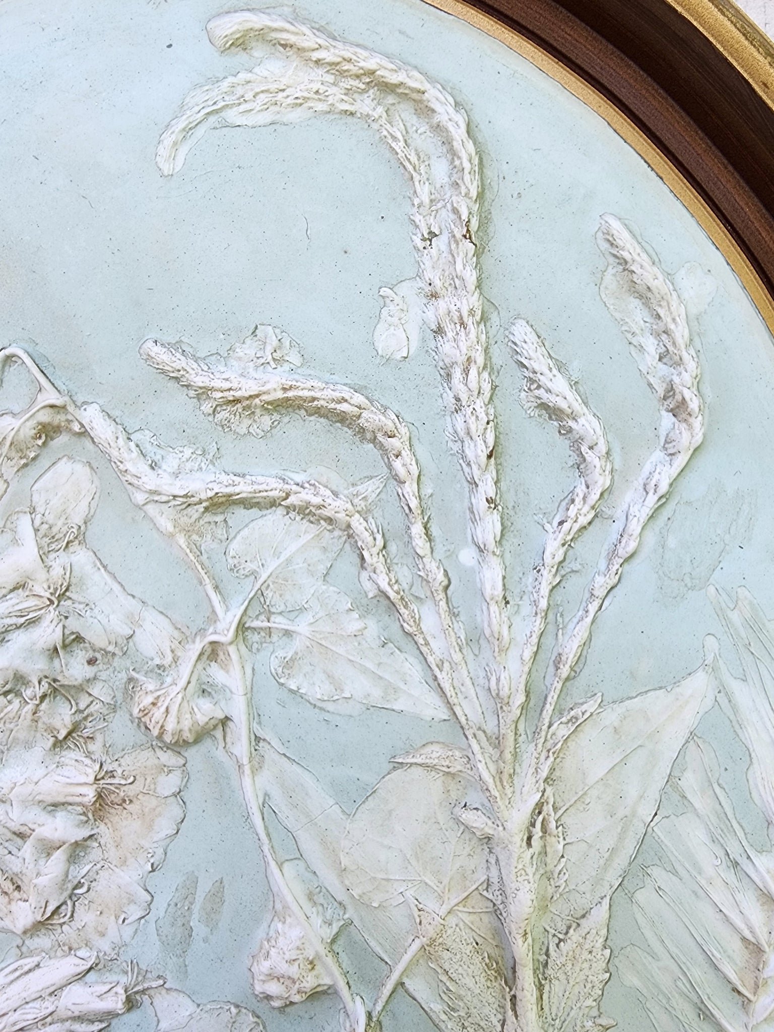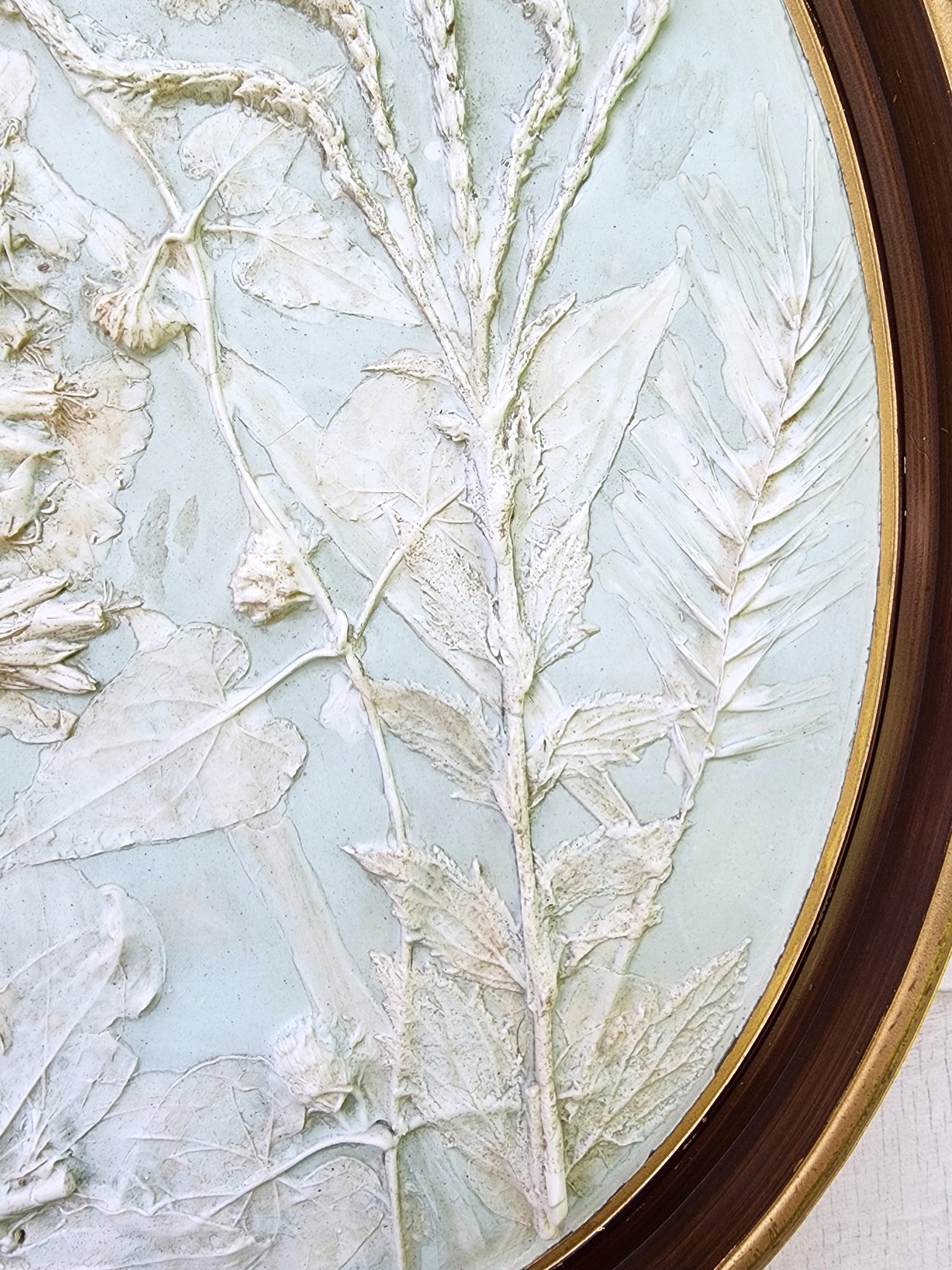Botanical bas relief plaster art commissions welcome for casts up to 16"×24" in size. Please send a message for more details.
